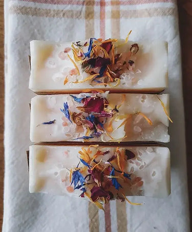 This nourishing soap is infused with our homegrown calendula for even more skin soothing benefits. With a light floral scent from all-natural essential oils and only the purest ingredients to soften & cleanse you'll feel the essence of Spring in fresh Bloom. 4oz. *Soap weight and appearance may vary slightly due to the hand poured & hand cut nature of the bars.