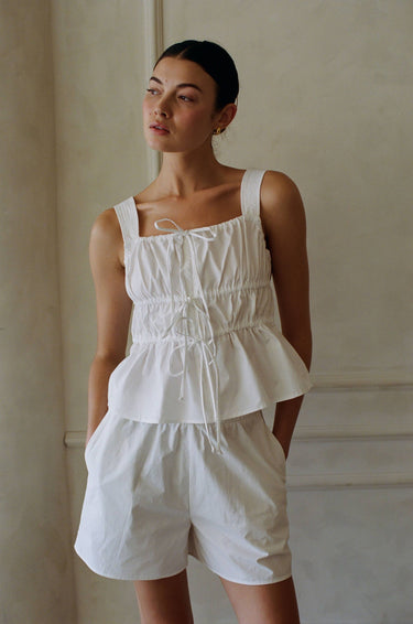 Step up your style game with this Tiered Tie Front Ruched Hem Top. Made from 100% cotton, this blouse adds a touch of sophistication to any outfit. The front ruched hem and square neck, along with adjustable elastic ties, give this top a one-of-a-kind look that flatters your figure perfectly.