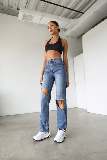 These pants are like a match made in heaven - comfortable but fashion-forward. The high-rise straight leg style flatters fabulously, and you can rock them all day without a worry. Plus, the dark wash will keep you looking sharp for any event.